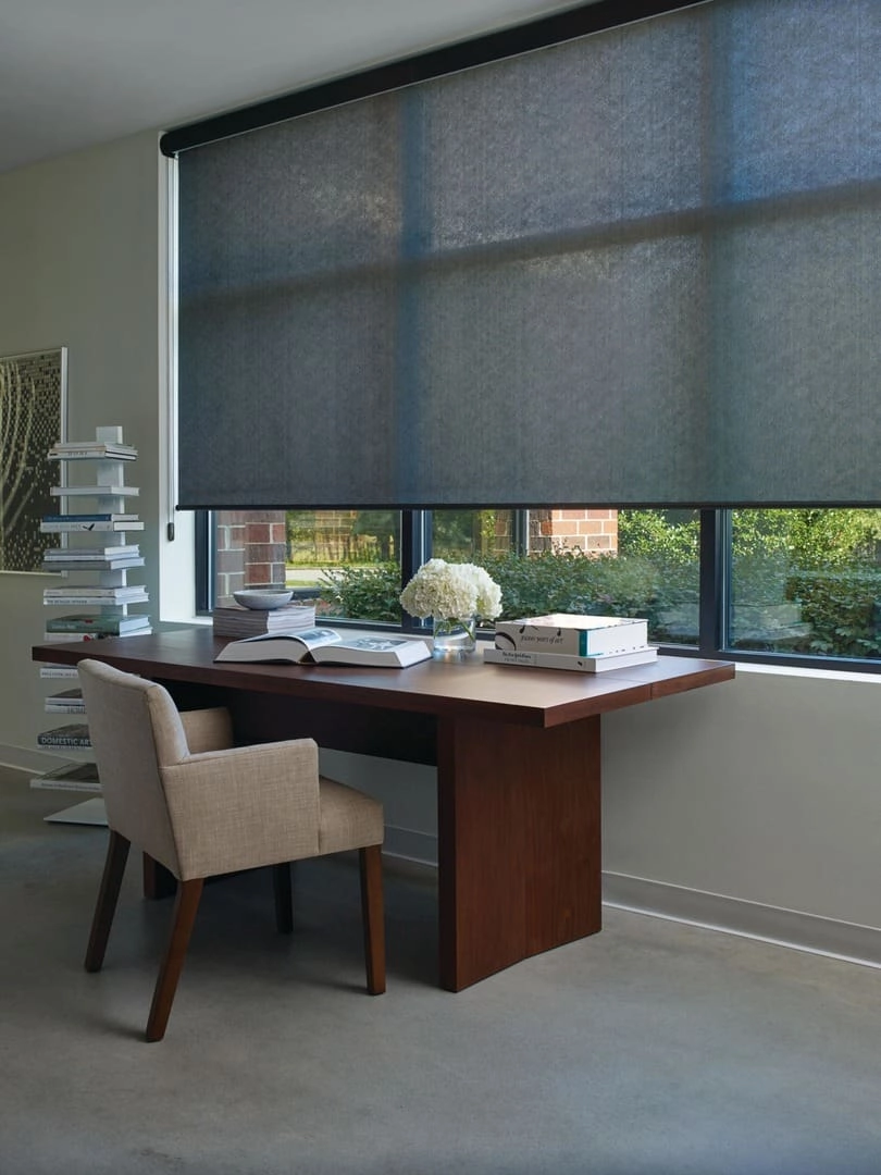 The kitchen can be a bit tricky when it comes to finding the right shades. You’ll want to make sure your shades can handle heat and moisture along with any food spills in your kitchen. The Designer Screen Shades collection is perfect for long-term durability and beautiful style. The low-opacity fabric options are made to handle the elements while providing soft light for your kitchen. Wood alternatives such as synthetic blinds or poly shutters are also a great choice for kitchens and are easily cleaned by wiping the surface down with a damp cloth.